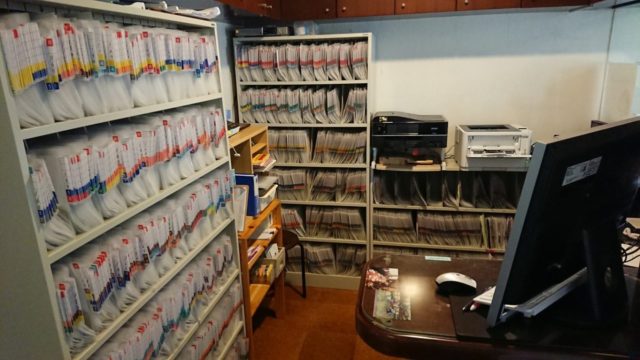 創業当時からある引き出しや机を撤去し、カルテラックを置くことで、色んな場所に保管していたカルテを受付だけで管理することができるようになりました。