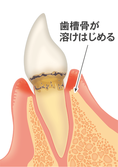 炎症が悪化し歯槽骨や歯根膜も破壊され溶け始めてきます。